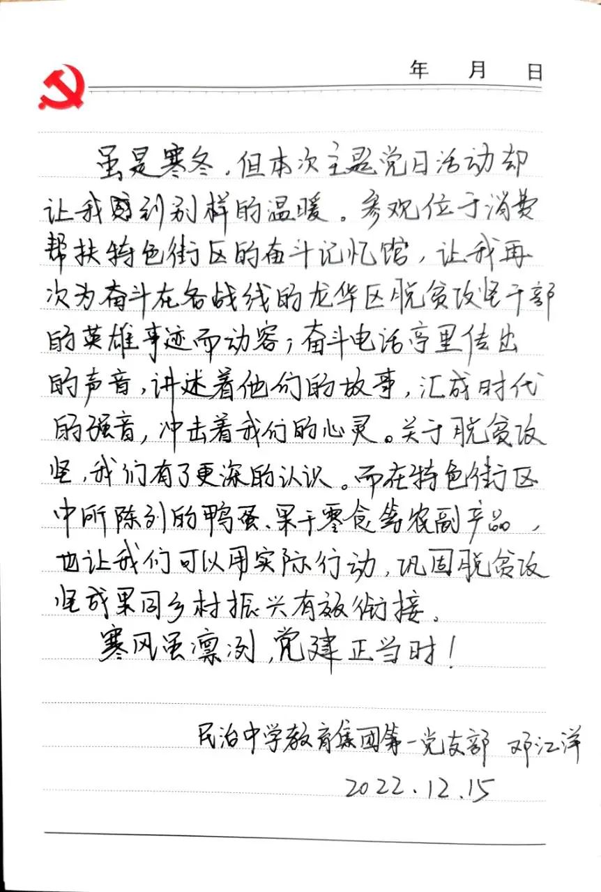 通過此次主題黨日活動,不僅豐富了我校黨內組織生活,增強了我校黨支部與民治中學教育集團第一黨支部之間的交流學習,還加強了黨員黨性錘煉,以實際行動支持鄉(xiāng)村振興,鼓勵廣大黨員干部不斷提高自身,為鄉(xiāng)村振興盡一份力!