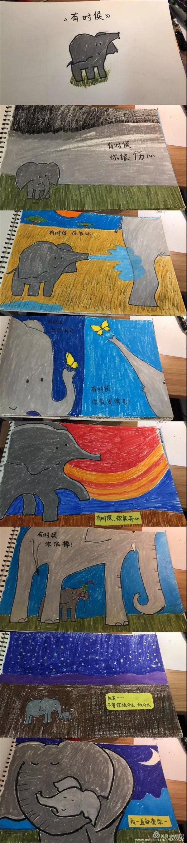 這本愛的表白書出自于小二班李皓辰和他的媽媽之手,借小象的形象描述了孩子不管是什么狀態(tài),父母都會(huì)給我們無限的愛!