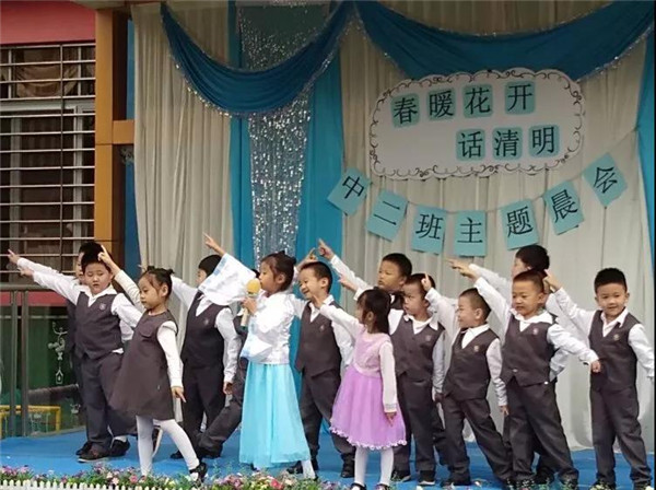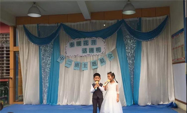 今天我們中二班以“春暖花開、話清明”的主題開展了主題晨會。接下來請跟著小編一起去欣賞她們的節(jié)目吧。