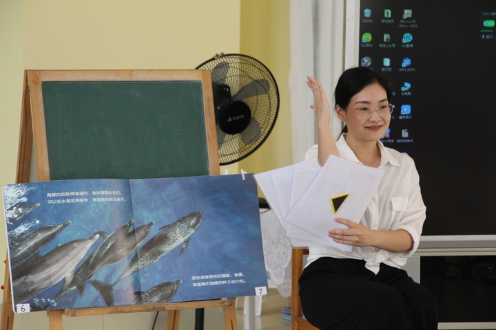 本次教研活動(dòng)分兩部分進(jìn)行。首先是課例觀摩,由溪山溫詩(shī)婷老師執(zhí)教《小黑捉迷藏》、碧水周娣慶老師執(zhí)教《下雨的味道》、興茂黎嬋老師執(zhí)教《風(fēng)姐姐來(lái)了》、峰薈陳斯媚老師執(zhí)教《鳥(niǎo)兒的嘴》、二幼王妍老師執(zhí)教《蝴蝶的大餐》、花園莊思娜老師執(zhí)教《海豚》展示6個(gè)教學(xué)活動(dòng)。老師們淡定從容的教態(tài),帶領(lǐng)孩子們?cè)趯捤捎鋹偟姆諊凶园l(fā)感受、自主閱讀、自由表達(dá),進(jìn)而促進(jìn)語(yǔ)言表達(dá)、閱讀技能的提高。
