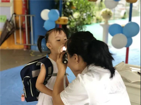 我們的醫(yī)生姐姐一早就在門(mén)口等候孩子們的到來(lái),給孩子們進(jìn)行晨檢!