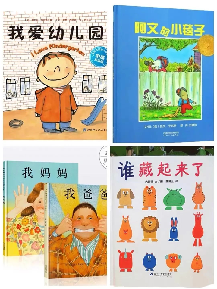 《我愛幼兒園》《加油雞蛋哥哥》《阿文的小毯子》《會響的小路》《我爸爸》《最大號的擁抱》《誰藏起來了》《小藍(lán)和小黃》《小牙刷,刷,刷,刷》。