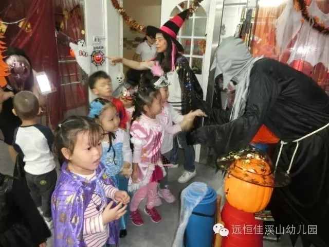 裝扮篇: 一大早,溪山幼兒園的孩子們就穿著各式各樣的萬圣節(jié)服裝開開心心地來幼兒園,幼兒園里瞬間變成了一個童話的世界,有小天使,有杰克船長,有小巫婆,還有小蝙蝠,有哈里波特,有鐘樓怪人,有葫蘆娃……各種角色,小朋友們互相津津樂道的聊起自己的裝扮的角色,開心又有趣,一片歡騰,幼兒園里處處洋溢著濃濃的節(jié)日萬圣節(jié)氛圍。