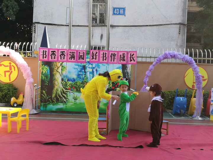 2016年11月28日,在遠(yuǎn)恒佳花園幼兒園大操場(chǎng),中三班的小朋友和他們的爸爸媽媽為大家獻(xiàn)上了親子童話劇《弗洛格找寶藏》。弗洛格和小熊去挖寶藏,他們先挖了個(gè)洞,洞越挖越深,結(jié)果被困在里面了。小熊急哭了,弗洛格想出了一個(gè)唱歌的辦法來(lái)安慰小熊。直到第二天,鴨子出來(lái)散步時(shí),才發(fā)現(xiàn)了他們。最后鴨子去找老鼠幫忙,老鼠很聰明,搬來(lái)了一架梯子,救出了弗洛格和小熊。