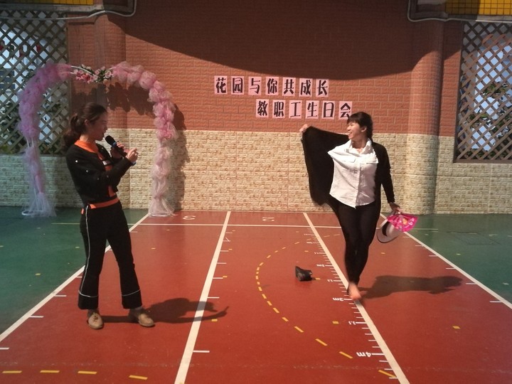 搞笑而歡樂的開場舞串燒,逗得在場的教職工們捧腹大笑,這是一份最奇特的生日禮物。接下來是好玩的游戲時間,這次工會為大家準(zhǔn)備了兩個游戲,分別是傳遞吸管和我唱你跳,教職工們分組競賽,大家通力合作、團(tuán)結(jié)一致。場上摩拳擦掌,場下吶喊聲、加油聲不斷。這是一份最特別的生日禮物。緊接著,曾園長、馬主任、大張老師、小張老師為壽星們獻(xiàn)上了最真摯的生日祝福,這是一份最溫馨的生日禮物。