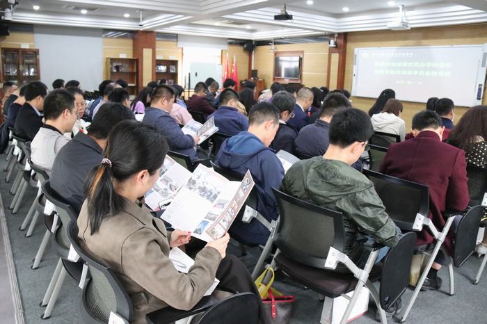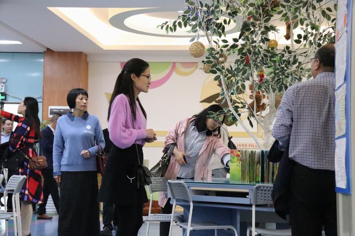 考察團(tuán)成員閱讀學(xué)校建設(shè)資料