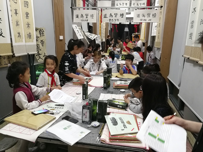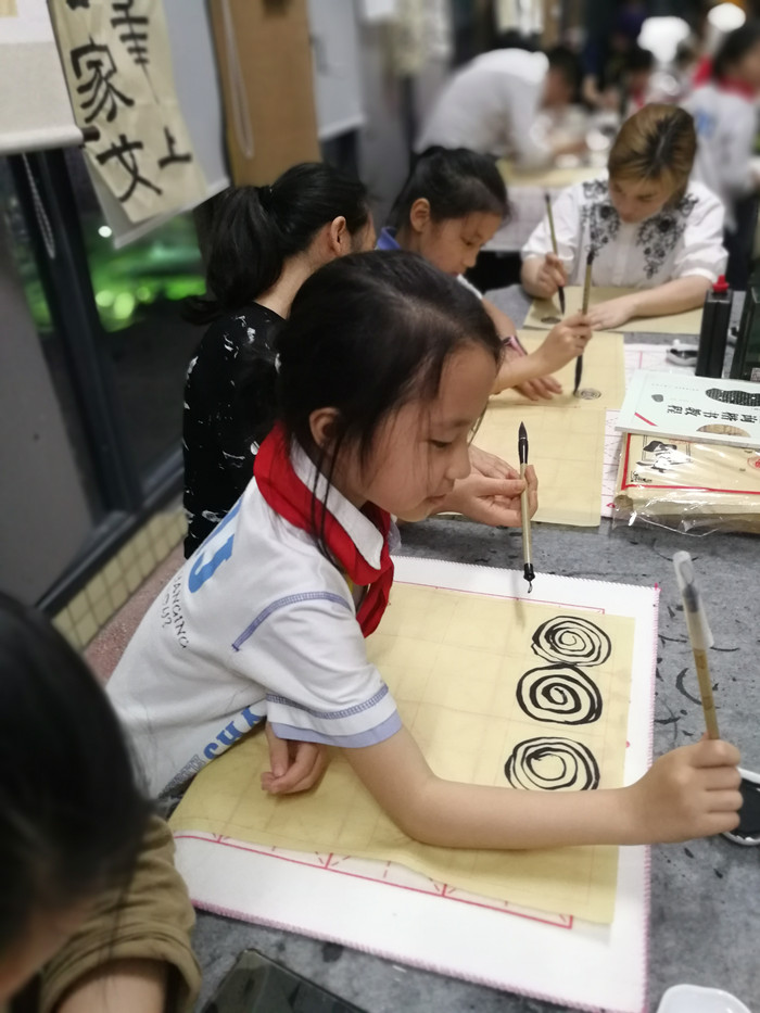書法親子社團(tuán)是由小學(xué)部家委陳文英女士組織開展的,書法指導(dǎo)老師由3E班張文榕爸爸安排。鄒老師從毛筆握筆姿勢、運(yùn)筆方法、間架結(jié)構(gòu)等基礎(chǔ)方面,不厭其煩地指導(dǎo)訓(xùn)練,逐漸深入教學(xué)。學(xué)員認(rèn)真練習(xí),場面文化氣息濃厚,深得社團(tuán)成員會喜愛。