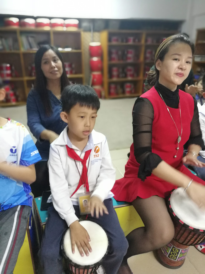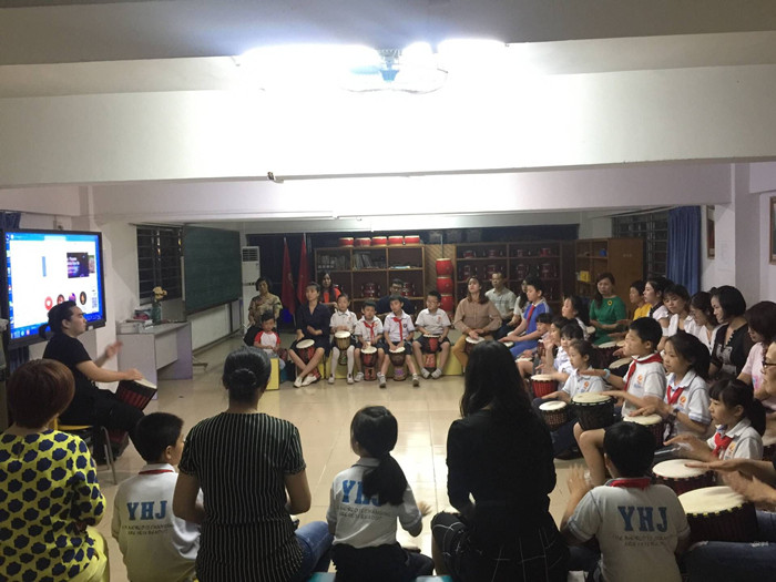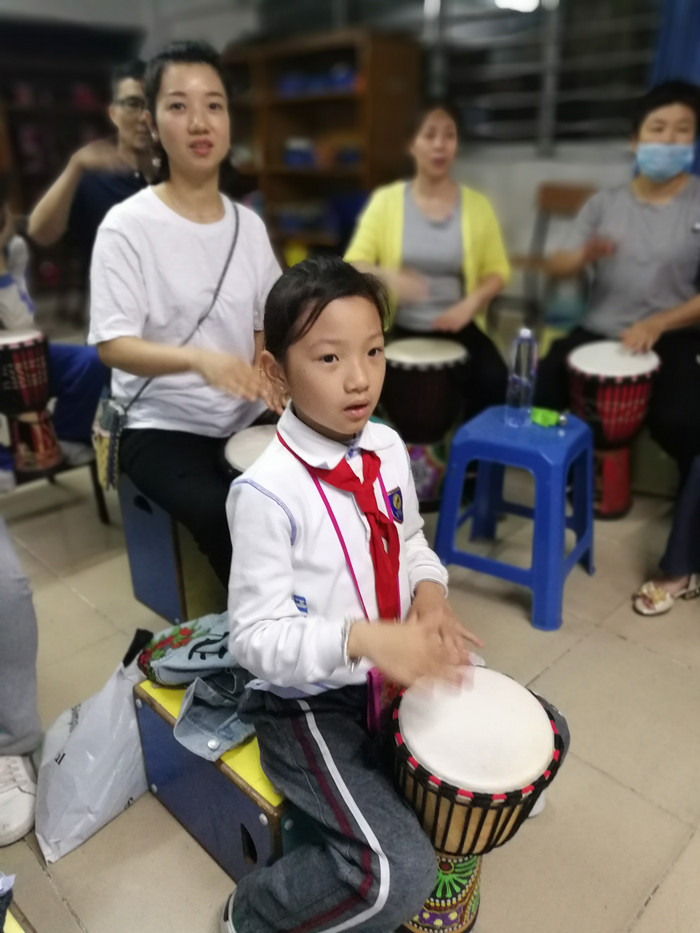 非洲鼓社團(tuán)由學(xué)校家委劉輝秘書長負(fù)責(zé),非洲鼓指導(dǎo)老師由1A班吳祈龍媽媽安排。李老師是鼓類專業(yè)指導(dǎo)老師,將這些年齡差異大、專業(yè)基礎(chǔ)不一的大小學(xué)員組織好、訓(xùn)練好,李老師可是費(fèi)了不少的腦筋。從非洲鼓來源、樂理知識、基礎(chǔ)訓(xùn)練、技藝把握、節(jié)目編排等入手,用通俗易懂的方法、較短的時間,將親子非洲鼓社團(tuán)的成員們,很快從一無所知訓(xùn)練到小有成就。相信,在藝術(shù)節(jié)舞臺上,非洲鼓社團(tuán)會給師生、家長帶來震撼的視覺感受。