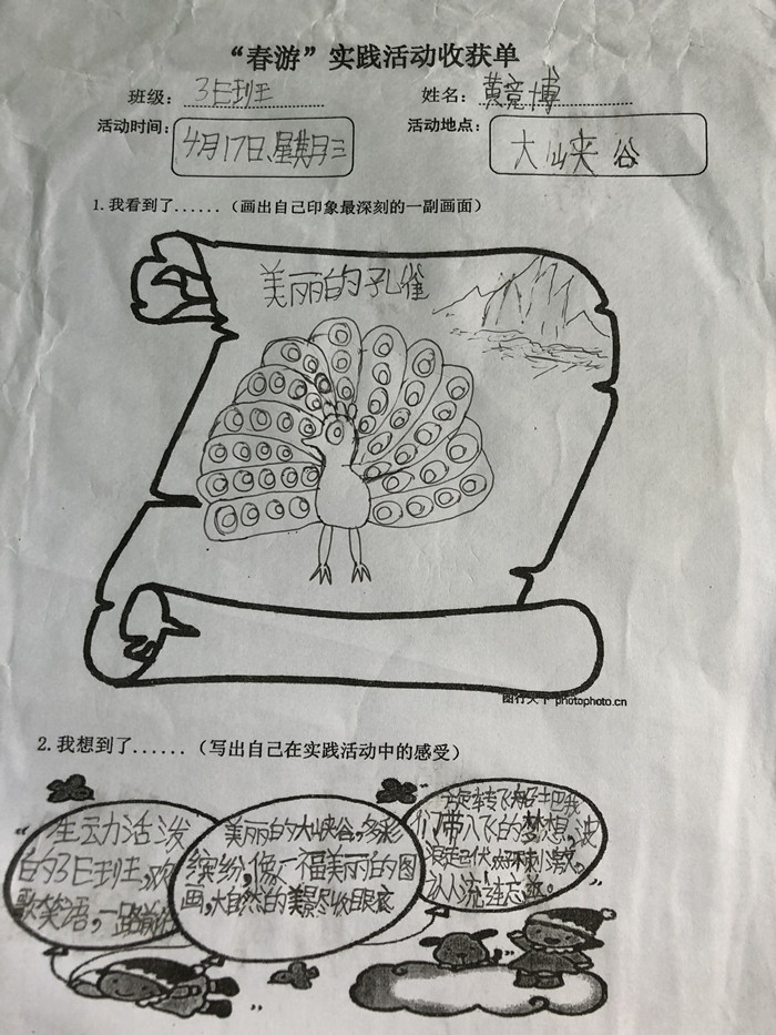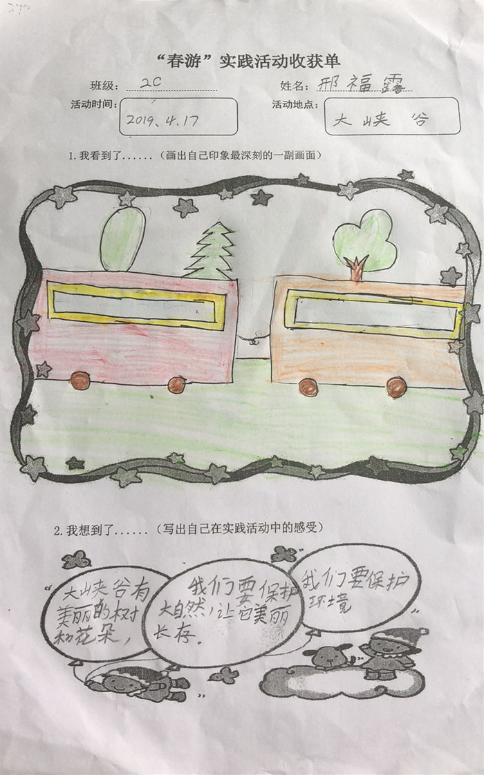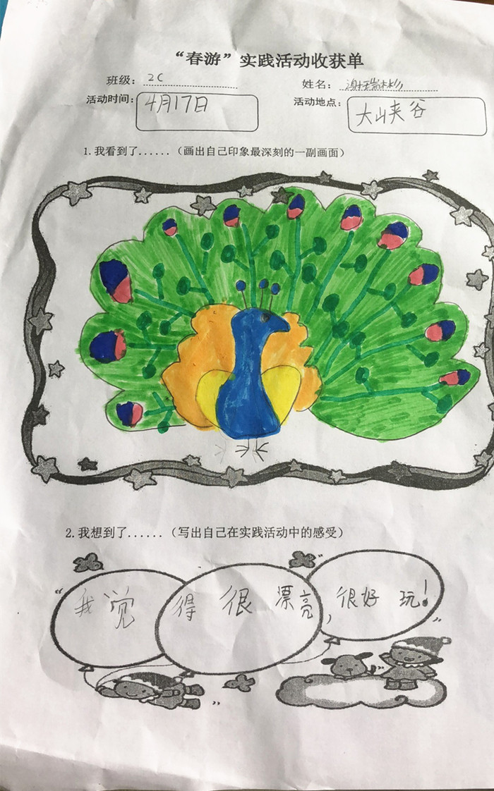 古人云:“行萬里路,讀萬卷書”。有所見,有所思,有所記,活動才有真正的意義?;顒咏Y(jié)束后,同學(xué)們通過繪畫和寫作相結(jié)合的形式,把自己的所見、所思、所感記錄下來,并在同學(xué)中進行了交流、展示,為本次春游畫上了一個圓滿的句號。