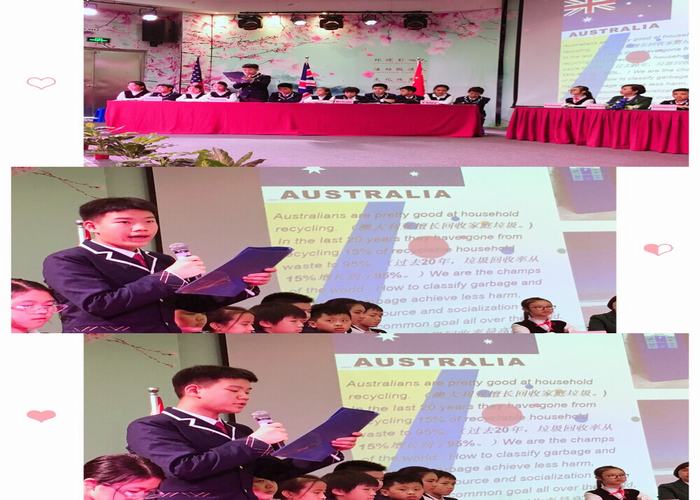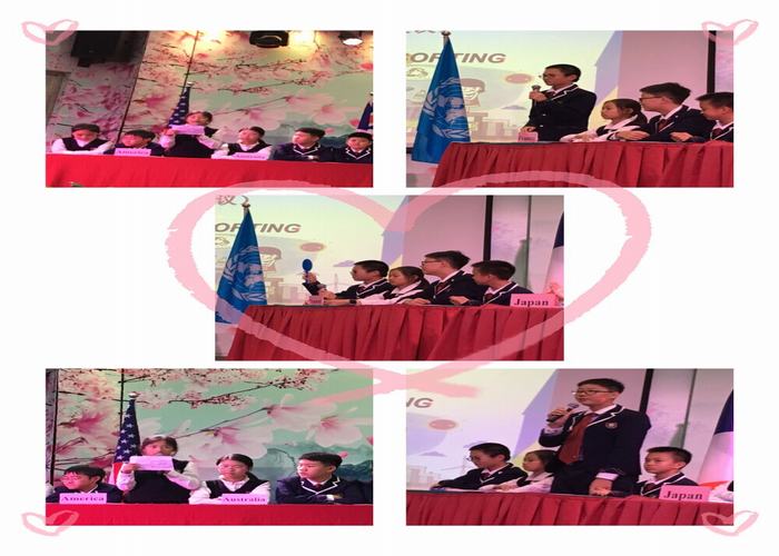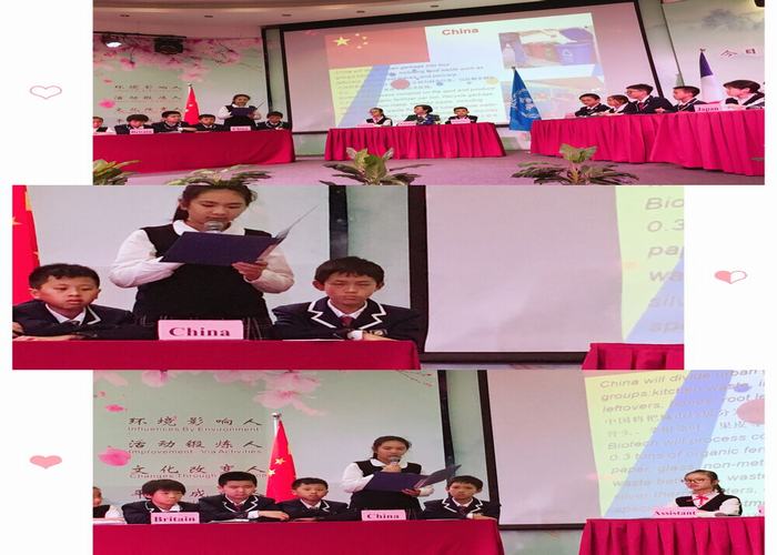 5-6年級的孩子們則充分發(fā)揮了高段英語語言能力優(yōu)勢,召開了以《在全世界倡導(dǎo)垃圾分類和環(huán)?!窞橹黝}的“模擬聯(lián)合國大會(huì)”。