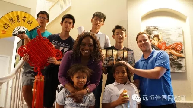在學(xué)校學(xué)習(xí)的兩周時間里,同學(xué)們的衣食住行都由美國的寄宿家庭的爸爸媽媽精心照顧,同學(xué)們鍛煉了英語,了解了美國文化。在準(zhǔn)備進(jìn)入營地的前一天晚上,同學(xué)們依依不舍地和自己的寄宿家庭告別,并送上了他們?yōu)榧乃藜彝ゾ臏?zhǔn)備的具有中國特色的禮物。