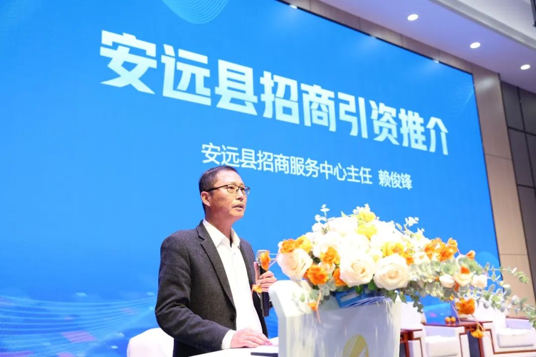 安遠縣招商服務(wù)中心賴俊鋒主任進行了招商推介活動,介紹了安遠的區(qū)位優(yōu)勢、產(chǎn)業(yè)政策、重點產(chǎn)業(yè)等,號召大灣區(qū)的企業(yè)家們“投資安遠,安行致遠”。