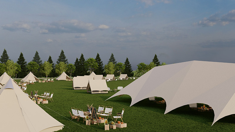 星空露營(yíng)園以帳篷露營(yíng)、戶外美學(xué)、潮流造趣和內(nèi)容聯(lián)合等元素,開(kāi)創(chuàng)了全新的戶外生活方式。我們整合了營(yíng)地、景區(qū)、休閑、研學(xué)、運(yùn)動(dòng)、玩樂(lè)、主題活動(dòng)等模式,推出了載人無(wú)人機(jī)、太空VR體驗(yàn)館、蹦極塔、燒烤區(qū)、篝火晚會(huì)、一九酒吧、星空音樂(lè)吧等項(xiàng)目,滿足不同人群的山野體驗(yàn)、精致露營(yíng)、親子游樂(lè)、文青聚集、潮玩打卡等需求。